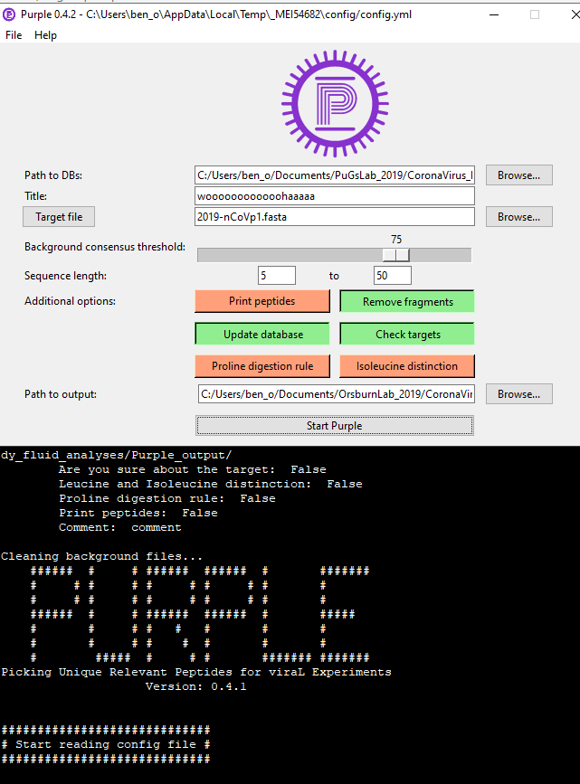 Before you panic, when they wrote the paper “Purple” was just a Python script that you can get here. I assure you this is no longer the case. There is a very straight-forward (to install) executable that will set you up with a GUI that looks just like this —