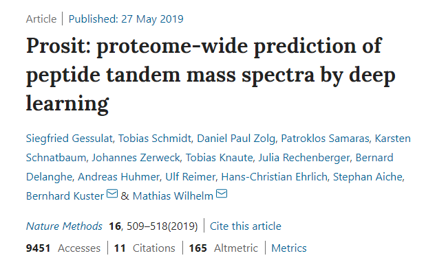 In as few words as I appear capable of writing — Prosit looks at the ProteomeTools database (you know that thing where they are synthesizing EVERY human peptide and then fragmenting them and making libraries?) and it models the peptides YOU give it against that library with this deep learning thingy.